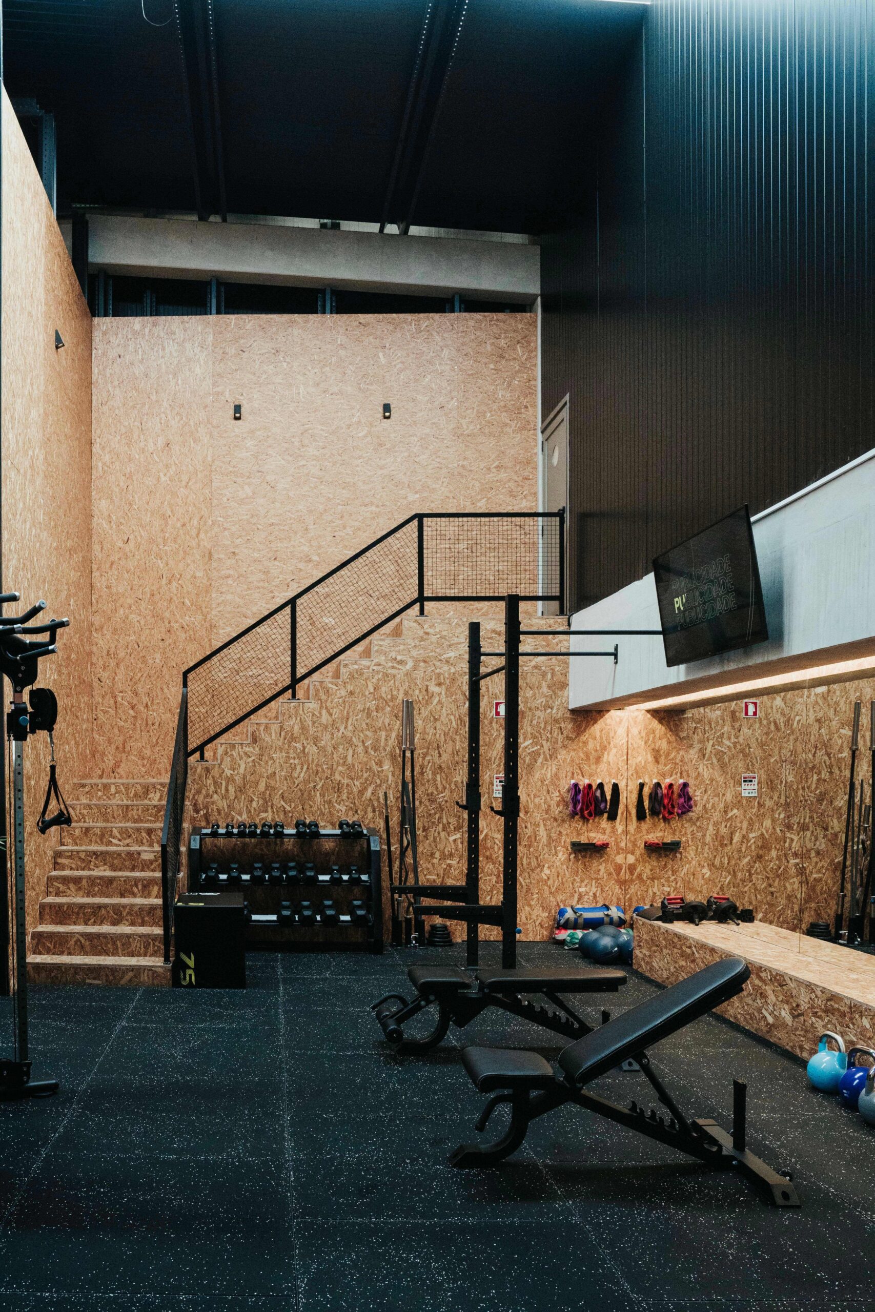 O estúdio dispõe de três espaços distintos para treinos individuais (180m²), treinos em grupo (180m²) e Pilates (50m²), assegurando conforto, privacidade e um ambiente adequado a cada tipo de treino.